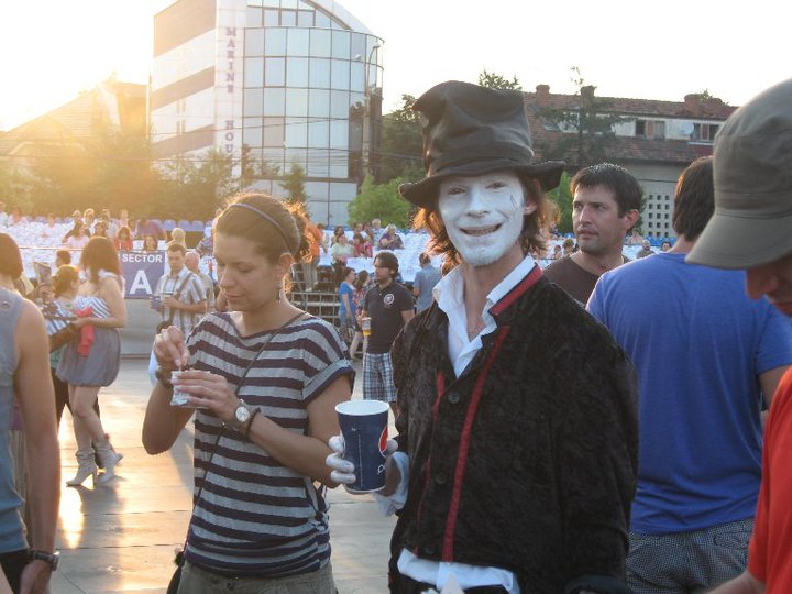 Pe lângă cortul de sunet s-au strâns mulţi gură-cască. Nu pot lipsi nici eu. O pereche de dansatori, doi mimi şi câţiva balerini se străduiesc să anime atmosfera. În bună măsură, chiar reuşesc.