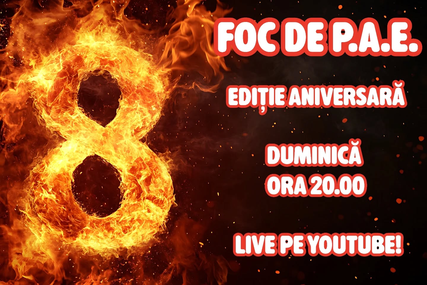 Am aniversat 8 ani de la primul episod al emisiunii Foc de P.A.E. Dacă ați ratat acest episod, îl puteți urmări mai jos.